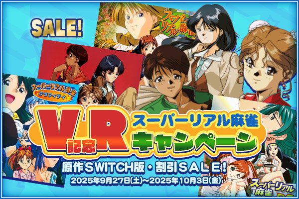 いつもスーパーリアル麻雀をお引き立ていただきありがとうございます。スーパーリアル麻雀VRの発表を記念し、2025年9月27日(土)から10月3日(金)まで期間限定割引セール「スーパーリアル麻雀VR記念キャンペーン」を開催いたします。…